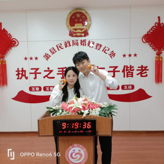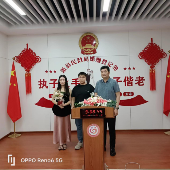 为推进婚俗改革实验区建设,萧县民政局举办丰富多彩的活动,实力“宠”新人。提前通过《萧县发布》下发举办”青春相约,缘定萧城“主题集体颁证仪式通知,特邀3名结婚登记颁证师在庄严的国徽下,为15对新人颁发了结婚证。“这样的结婚颁证仪式有创意、有心意、有爱意,让人们既体验了中国传统结婚登记的深厚文化底蕴和绵延千年的中式浪漫,又感受了新时代文明婚俗礼仪的典雅浪漫,让我们感受到了从未有过的满足与快乐!”颁证现场,新郎邓展鹏感慨地说。