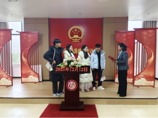 “1212”谐音“要爱要爱”,许多新人选择在12月12日这个充满爱的日子里领取结婚证。为保障新人在心仪的日子里顺利许下爱的誓言,埇桥区民政局婚姻登记处为爱护航,给新人们提供仪式感满满、幸福感满满优质服务。