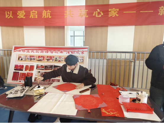 活动核心环节之一是书法老师现场挥毫,书写“福”字与寓意美好的春联。此举将新春祝福与婚姻美满寓意巧妙结合。活动规定,当日办理结婚登记并接受婚前辅导的新人,可获赠一幅手书对联或“福”字;所有领取结婚证的眷侣亦可领取“福”字一副。这份独特的文化礼物深受新人欢迎,有效传递了“双喜临门”的美好祝愿。