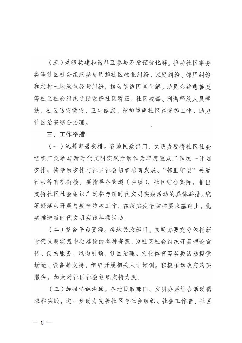 宿民发〔2022〕75号转发关于推动社区社会组织广泛参与新时代文明实践活动的通知